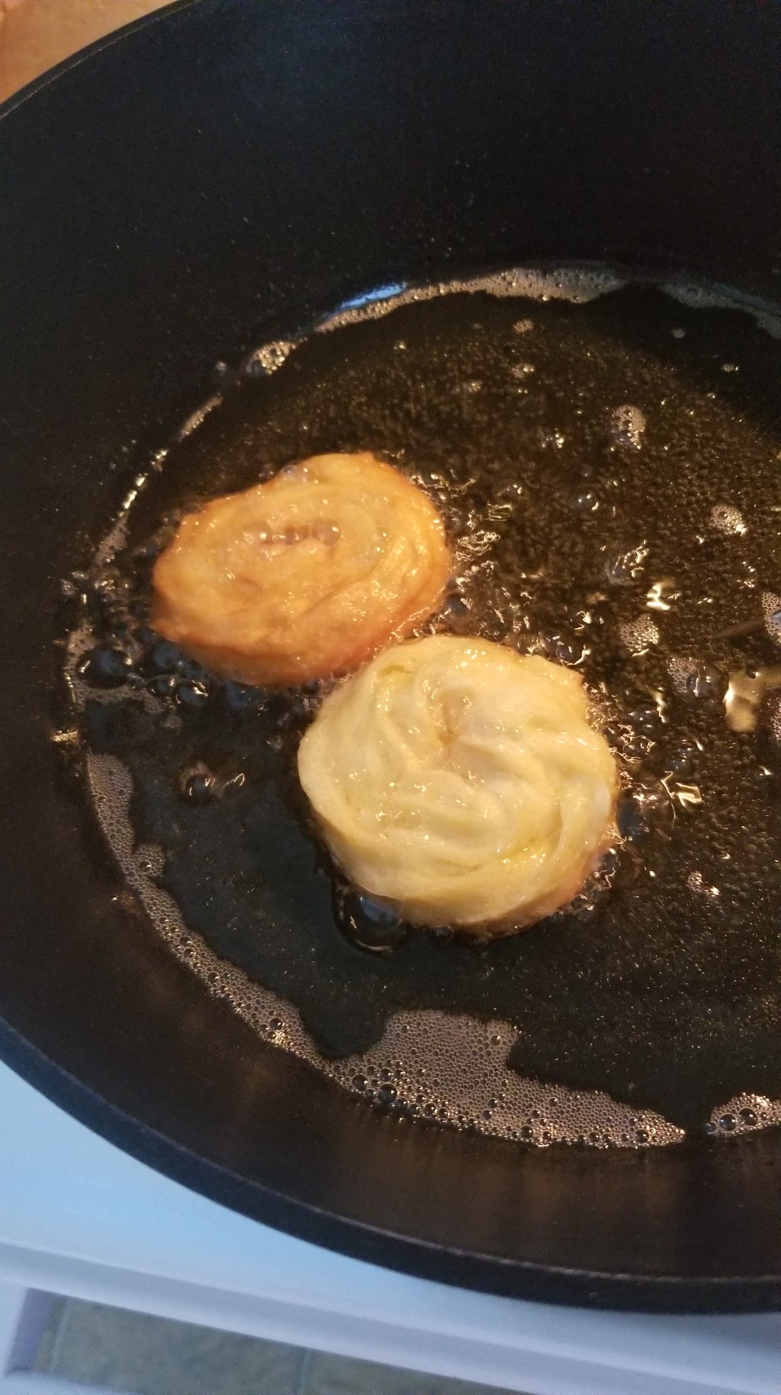 I used my Dutch pot with 3 cups of oil, frying at at 360°F 2-3 minutes on each side.
